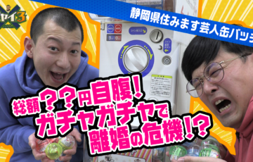 沼津ラクーンよしもと劇場限定の住みます芸人缶バッチガチャガチャ 全額自腹を賭けて自分の実写版缶バッチを狙う! 積み重なる自腹で離婚の危機が!?